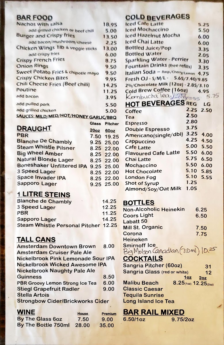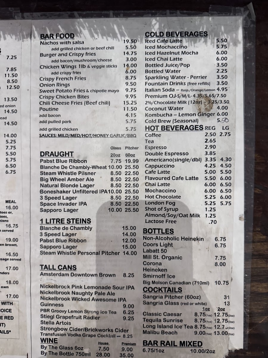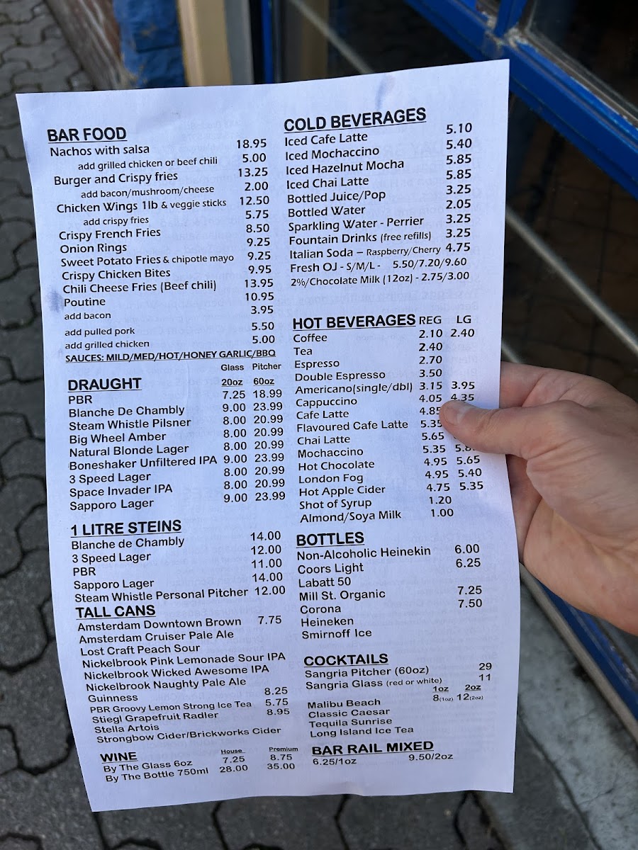 The menu features all-day breakfast items like omelettes, eggs Florentine, and French toast alongside comforting dishes such as chicken schnitzel and poutine. Sweet options include a variety of cakes and pastries, perfect for pairing with their smooth lattes or chilled iced chai tea.