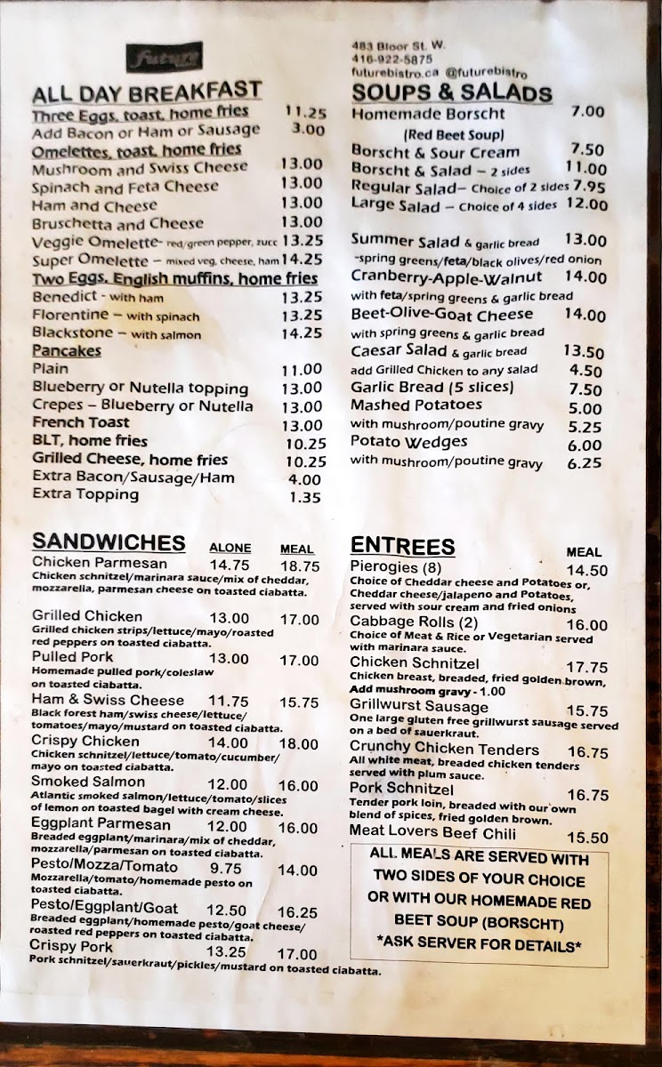 Future Bistro Menu